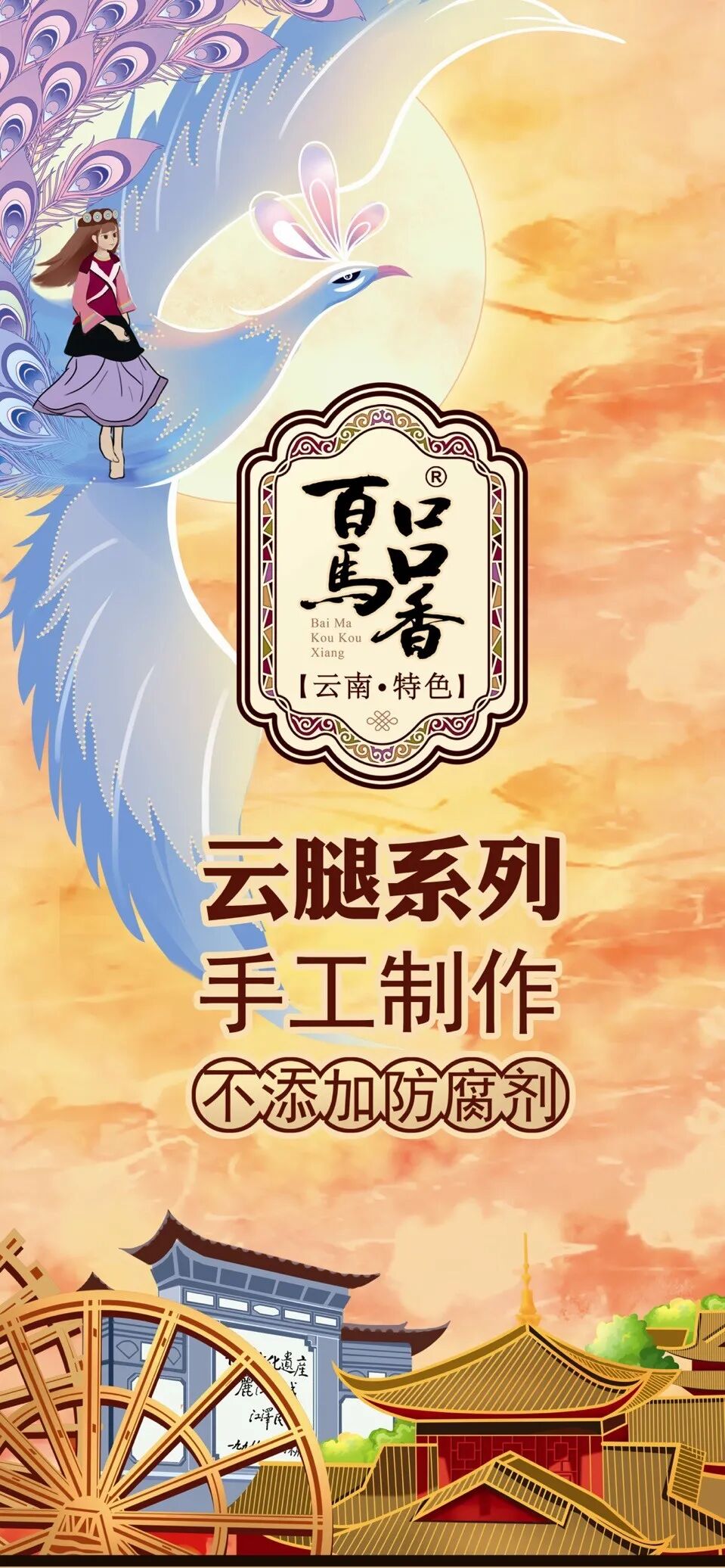 来自七彩云南的百马Aulaye香荣获“中华老字号”称号,其特色是滇式月饼。滇式月饼馅料选用了云南火腿、鲜花,饼皮疏松,馅料咸甜适口,质地澄黄,油而不腻。