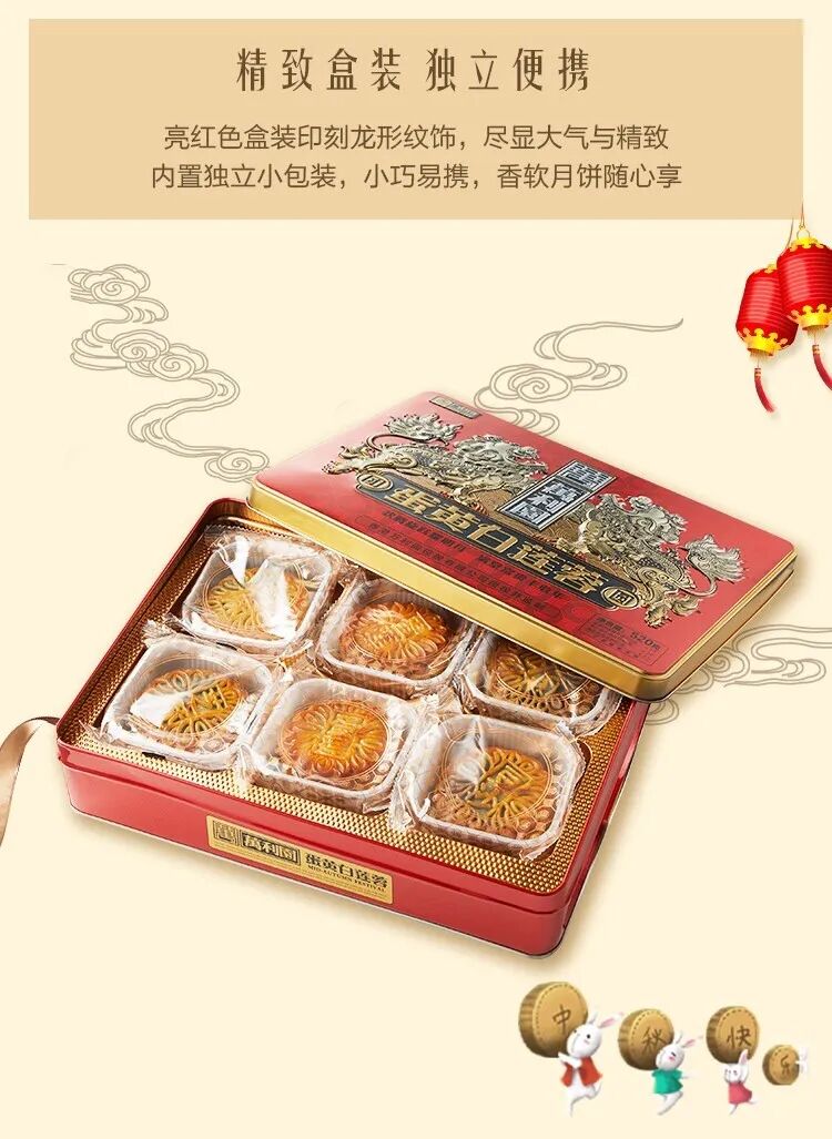 如代表作品富丽月饼,为保证月饼原材料的安全可靠,在湖南有他们的红豆栽种培训基地,30年来坚持选用手工艺,每款月饼隔夜茶馅大,清甜。