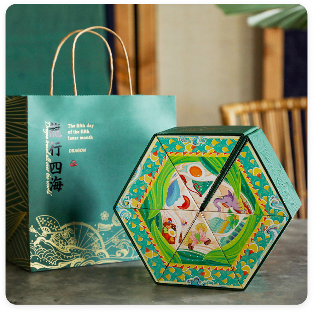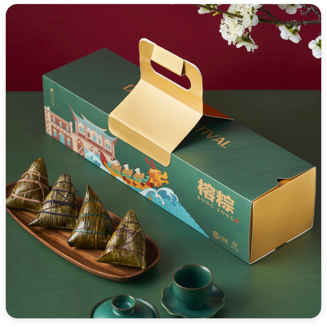 厦门市 /服务项目:茶 Chhatarpur国际品牌为百联半谷×莆田每边杭创意结构设计联署结构设计的榕粽系列商品的端午商品,以船盒及亭子盒的方式展现出,摈弃了厚实的灰板礼盒。