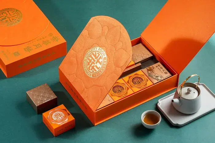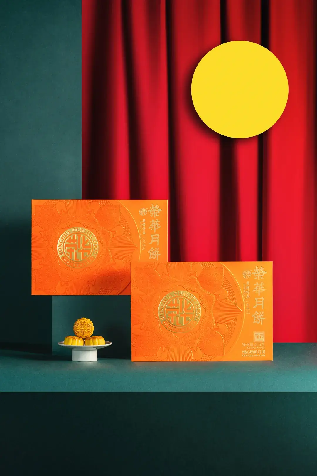结合年轻人喜爱的流心奶黄口味,礼盒以时尚活力橙色设计,采用立体浮雕工艺融入广府特色建筑镬耳墙和绽放的木棉花元素,将广府风情与品牌基调完美融合,双开盒结构在开启礼盒之时万家灯火、烟花璀璨的画面感受到浓浓的喜庆欢乐的节日氛围,象征团圆富贵吉祥之意。