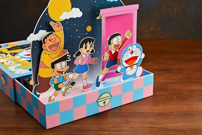 每一个细节都是哆啦A梦带给你的乐趣与陪伴,大雄的抽屉,哆啦A梦的小铃铛,头顶竹蜻蜓飞向圆月。拉开“大雄”的抽屉,亲手完成可爱的任意门立体拼图,哆啦A梦和他的朋友们正在欢乐地奔跑,快快跟上他们呀!星空满月下,穿过任意门,另一个时空里是什么呢?