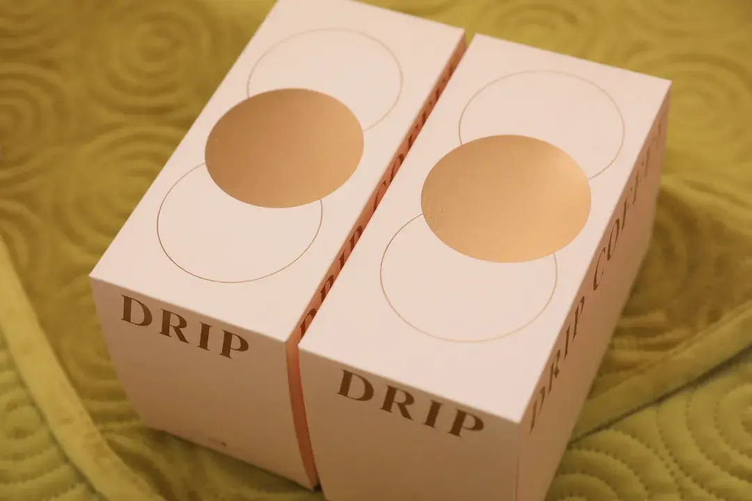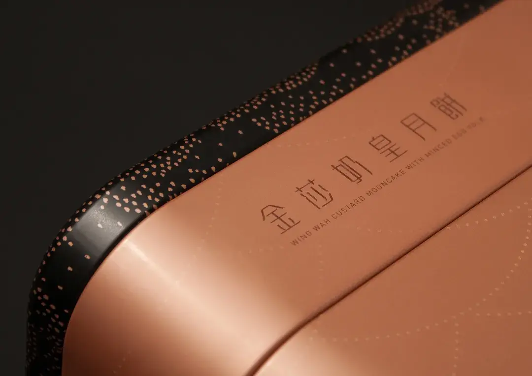 说起“花好⽉圆”的中秋佳节,总会想起苏轼的《⽔调歌头-徐州中秋》,“岂意彭城⼭下,同泛清河古汴,船上载凉州。⿎吹助清赏,鸿雁起汀洲。”因此设计师将“清河、古城、圆⽉、 船”⽤精细的铜板雕刻,印刻⼀副美好的⽉圆之夜,将传统佳节美好团圆之意寄予其中。 ⽉饼搭配来⾃⽵篱庄园的贵族咖啡,为了体现其珍稀,设计师在礼盒的包装上使⽤了更多的烫⾦⼯艺。在⾊彩上选择了相对雅致内敛的浅肤⾊,盒⼦打开后,橙⾊和明⻩⾊的⽉饼盒有⼀种让⼈眼前⼀亮的感觉。