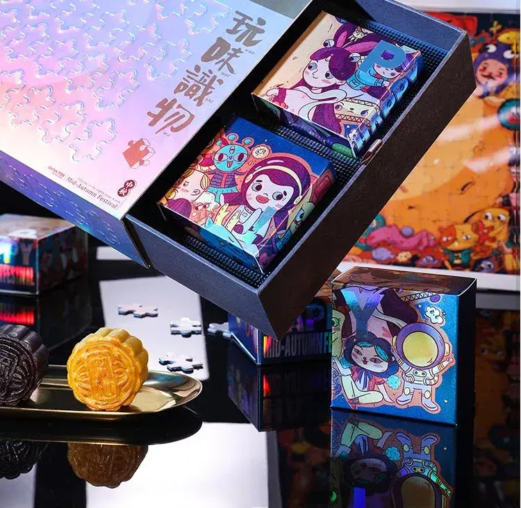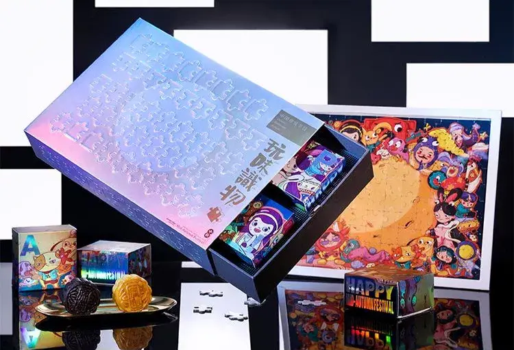这款关茶新食礼出品的奶酥十六仁中秋礼盒,哆啦A梦粉丝和甜品爱好者必然不会错过,非常精致,惊艳。内附拼图,拼图分别是中秋团圆背景图,哆啦A梦、大雄、静香、胖虎、强夫和任意门。礼盒还有贴心的拼图对应的插槽。有味,有颜,有趣!