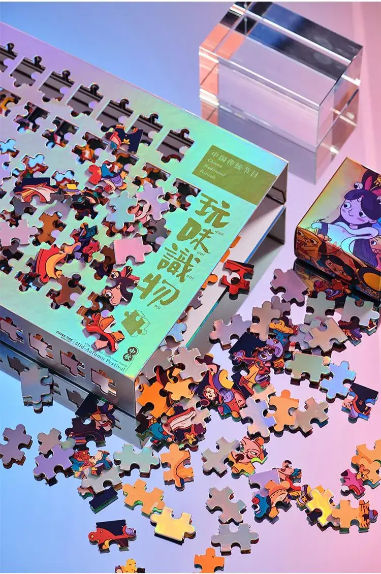 “玩味识物”是把“玩物识味”做了替换,富有趣味性。寓意也是把好吃的好玩的结合在一起的意思。中国传统文化就像拼图,每一块都一样,却又不同,紧紧贴合,缺一不可。每一块拼图,我们都应该怀有敬畏之心去对待,才能在历史的长河中,拼出一幅幅绚丽多彩的画卷。而中秋,是传统节日中,非常盛大的节日,有很多的传说故事,历史典故。