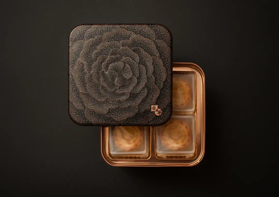 粒粒蛋⻩系列是⽤如⾦沙般的粒粒蛋⻩混合不同⼝味,制作成的迷你⽉饼,尺⼨只有传统⽉饼的1/3。盒⾯设计承传荣华传统月饼、采⽤牡丹花图案,透过压凸方法带出质感,配合不同颜色及平面元素表现不同⼝味,既现代、合时,大受消费者欢迎; 很多消费者为了盒的设计而买来作收藏。