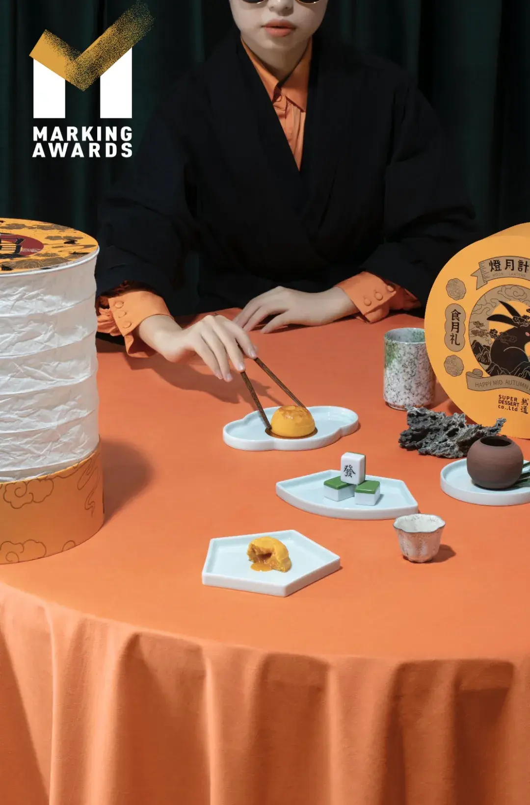 中秋·燈月计划礼盒是将中秋节食月、观月和点灯融为一体的一款节日伴手礼。设计师采用了大口食月的黑兔作为主视觉,将普通的月饼礼盒结合传统工艺,融合花灯的外框架,和创新月饼结合在一起,将国潮理念融入花灯中,致敬花灯手艺人的精湛手法,也致敬团圆的中秋佳节。