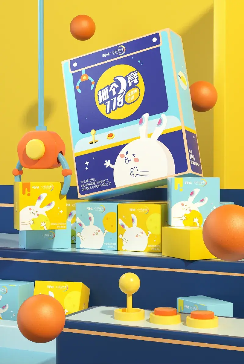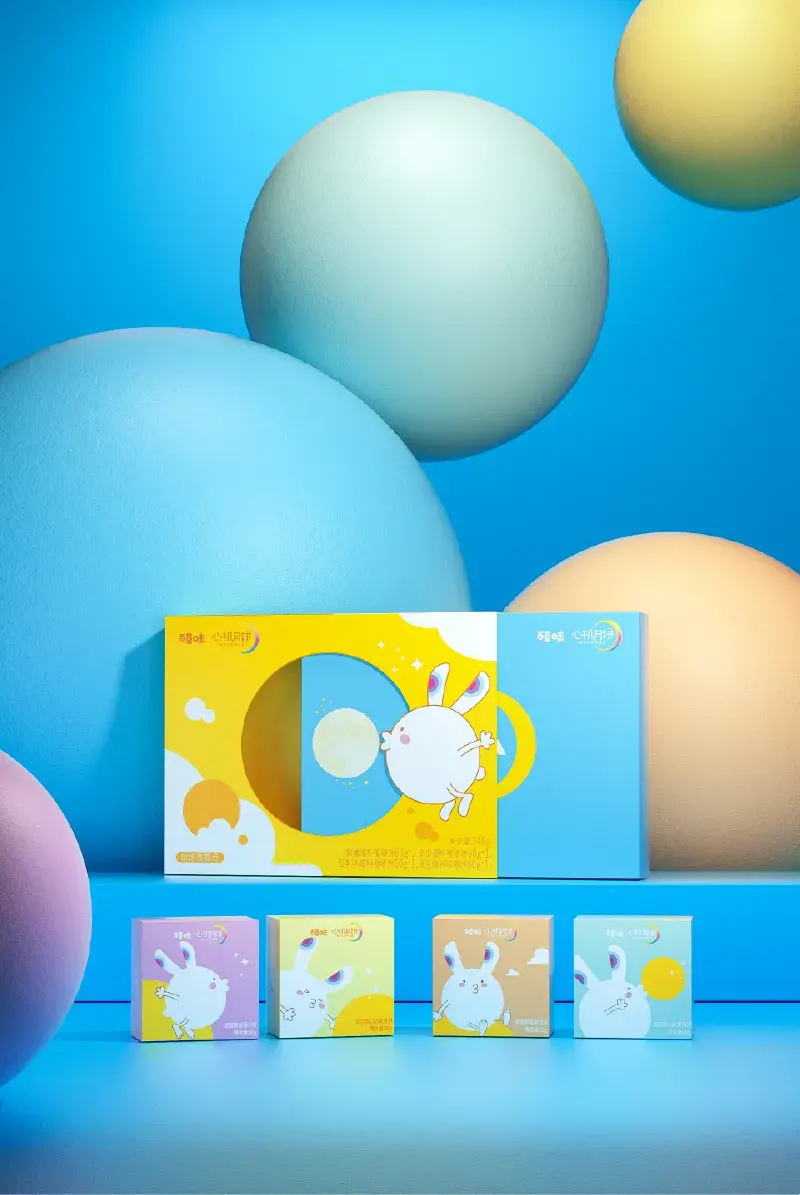 月圆嘟一个:包装分为两层,外层时候萌兔嘟嘴的造型,内层随着礼盒的抽拉,萌兔会亲到圆圆的月亮。包装有心机巧思,月圆时刻,想要你就要嘟一个。