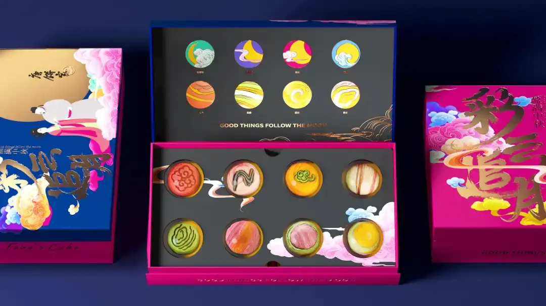 中秋节的月饼最初是用来祭拜月神的贡品,发展至今,中秋月饼的制作也由家庭自制转变为市面出售。种类越来越多,工艺越来越讲究,包装也日益精致且充满创意,好的月饼包装能够转化产品销量,帮助品牌曝光和涨粉,甚至能让客户主动找着来买。