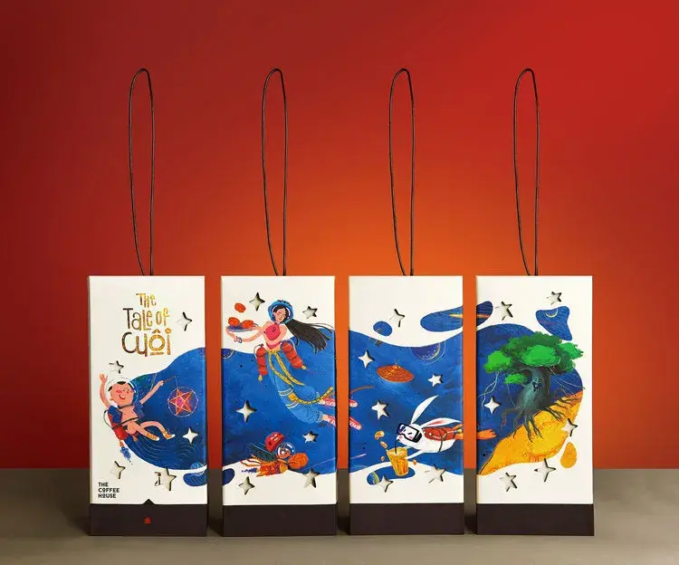 The Purpose Group设计团队为Coffee House 连锁咖啡店设计了这款名为“最后”的故事的限量版月饼礼盒包装。越南的中秋节也有吃月饼赏月的习俗,像我们一样一家人聚在一起吃月饼,赏圆月,不同的是越南的中秋节也是越南独有的儿童节,给孩子买灯笼做灯笼似乎是必备节目。在越南每到中秋节的这一天,孩子们一大清早就会点着华丽的灯笼,沿着马路一边走一边唱歌,进行烛光游园,灯笼裡的烛光代表了希望,而游园则象征了成功。