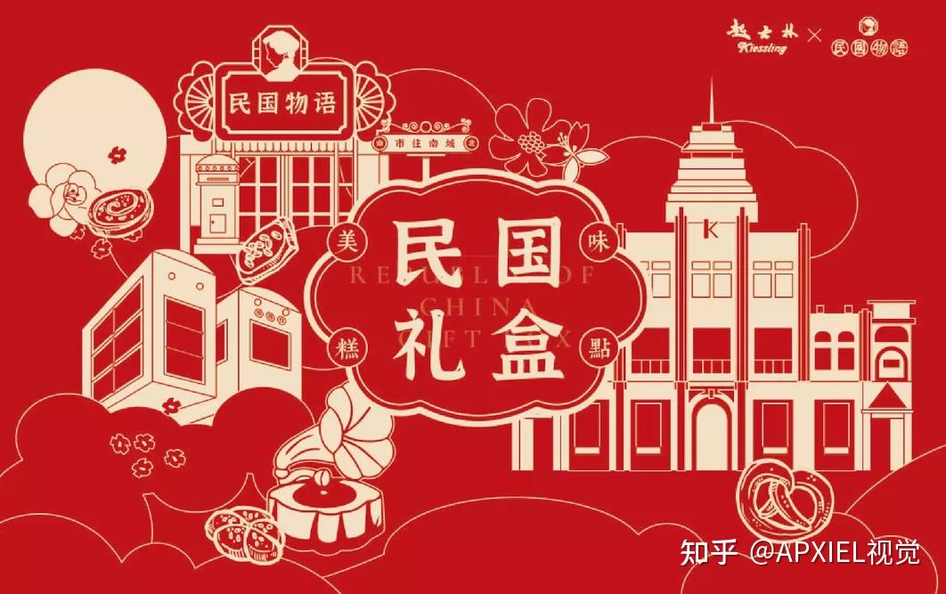 地道的国潮包装袋低反射率的枫叶红突出了新年氛围,手绘插图定位北京传统著名景点旨在以首都地域特色交相辉映国际品牌“中国造,正当潮”的结构设计理念。