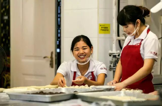 今年很多糕饼商都在提倡手工月饼的概念。但是批量生产的东西,基本不可能做到手工。王玉霞赖以生存的,便是代代相传的手艺师傅,经过这些年的动荡和饼店市场冲击,如今还在工作线上的老师傅仅剩几十人了,这也是王玉霞开不了很多店面的原因,目前唯一的汉口里店,和筹划中的梨园街店。