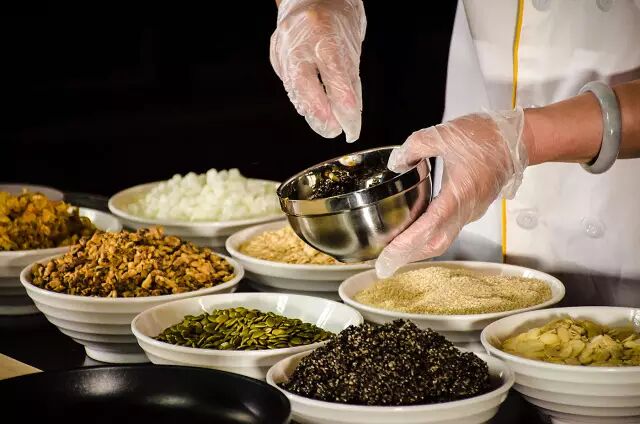 ▲曾涛“正宗的SE9月饼是非常好吃的,只是近些年被做变了味道”,SE9原本是瓜子仁、核桃仁、杏仁、芝麻仁、橄榄仁。橄榄仁比较少见,杏仁昂贵,很多商家便用花生仁来代替,然而花生仁烘烤后有一股齁味,会把整个馅的味道都破坏掉,加上馅都是用机器打碎后挤压进去的,破坏了果仁的组织结构。另外,传统做月饼,用的是手炸猪油,面皮很松软,然而现在工业制作用的是调和油,皮和馅吃起来都很硬,难吃就可想而知了。一枚手工SE9月饼是怎么炼成的